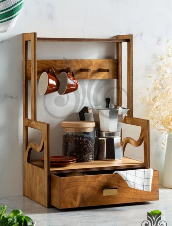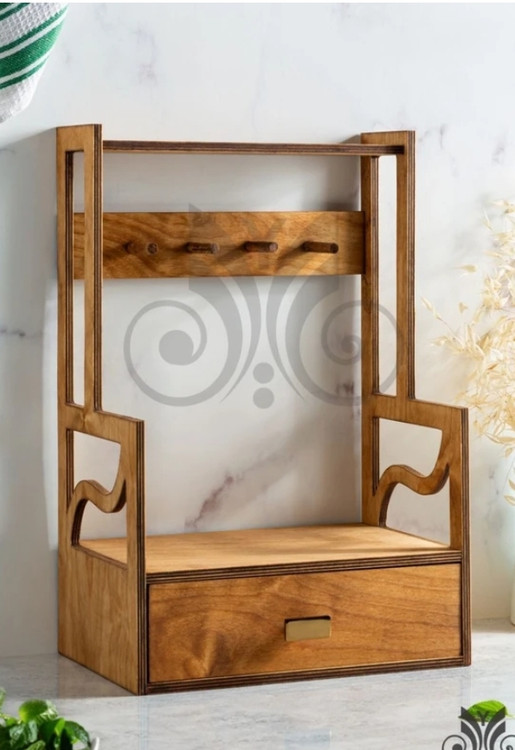 استند چوبی کشو دار ، استند چوبی آویز فنجان